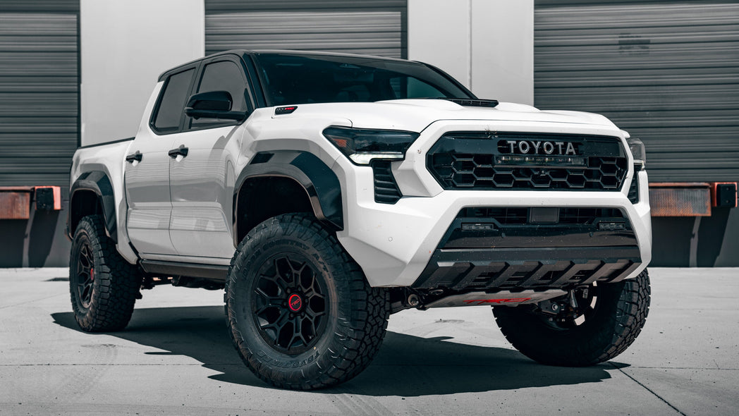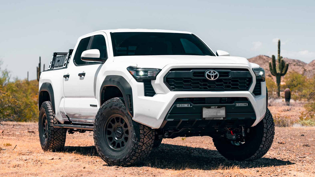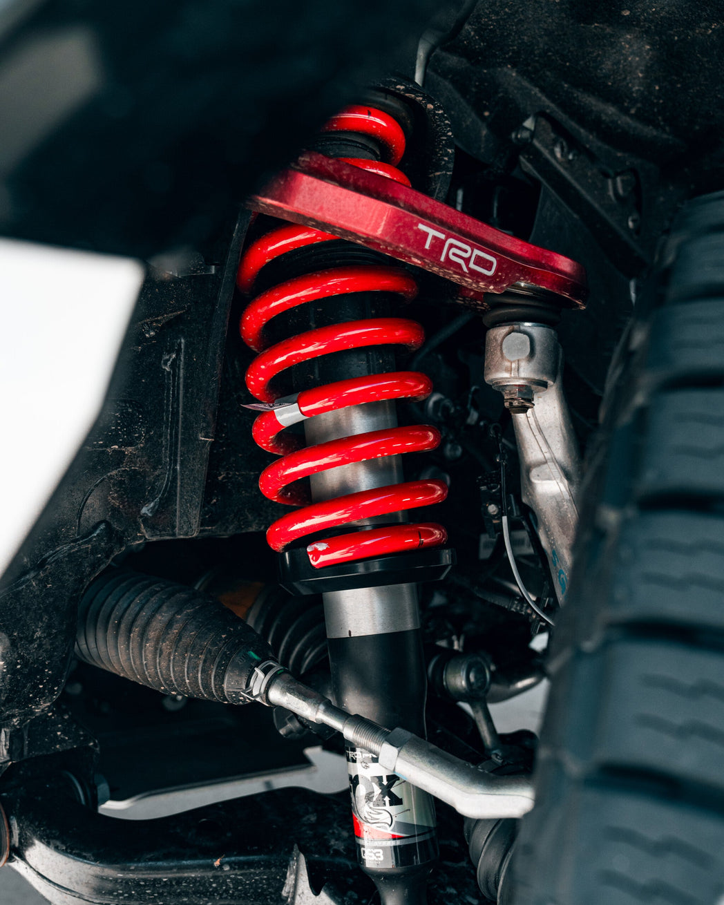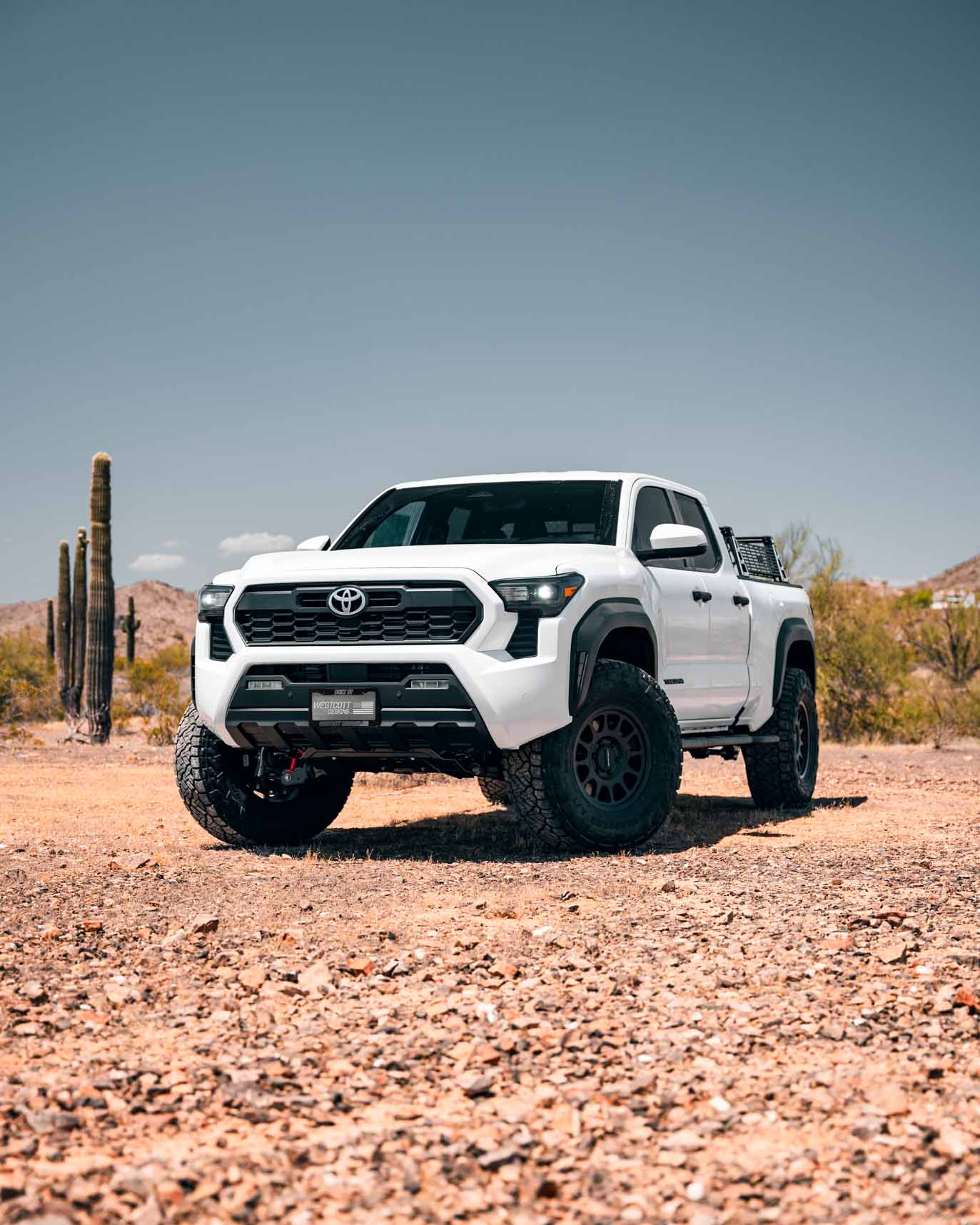 2024-2026 Toyota Tacoma (4th Gen) Preload Collar FRONT-ONLY Lift Kit by Westcott Designs Westcott Designs pre-load collar FRONT-ONLY lift kit for the all-new 2024-2026 Toyota Tacoma! This kit features all new CNC machined components and are available in both raw aluminum and hard black anodized finishes for that true “like factory” look. Our Westcott kit gives your Tacoma an additional 1.5” of lift in the front using your factory shocks and springs and includes complete hardware for an easy install. This is NOT your traditional spacer lift kit, you retain your factory ride quality, factory suspension geometry and still able to align the vehicle to factory specs after install. It does NOT require new Upper-Control Arms, and you can run up to a true 35″ Tire (tested with a 35 x 12.5 x 18” tire with the factory wheels).
