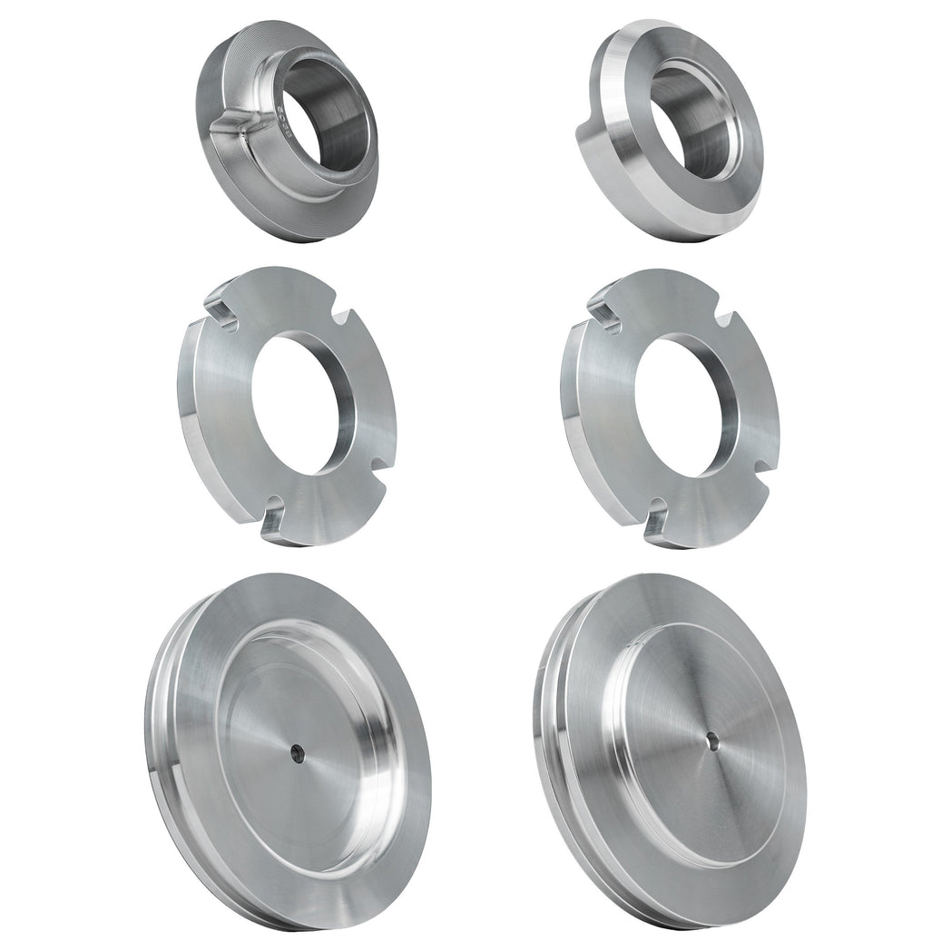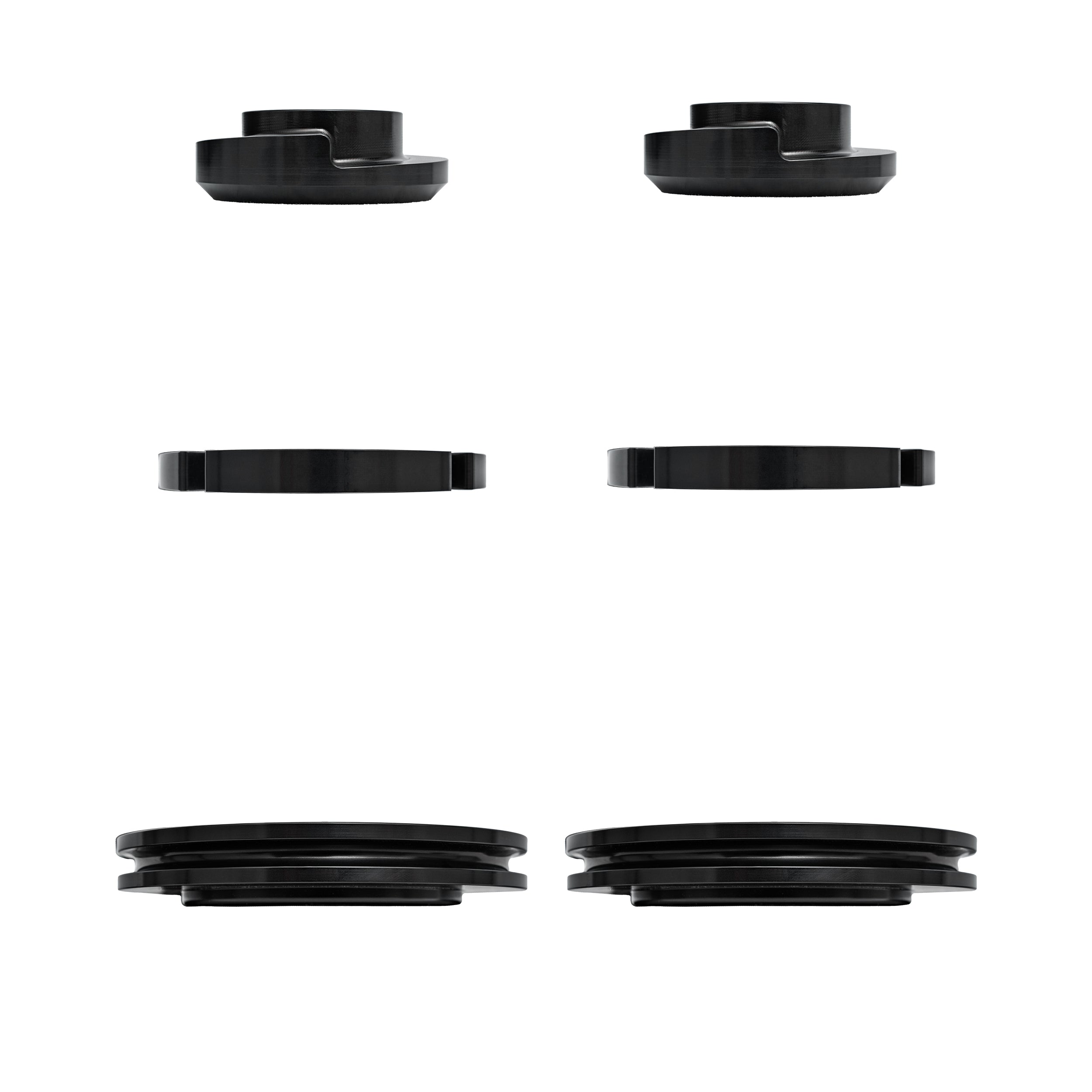 This kit features all new CNC machined components and are available in both raw aluminum and hard black anodized finishes for that true “like factory” look. This kit gives you 2.50” of lift in the front and .75” in the rear using your factory shocks and springs and includes complete hardware for an easy install. This is NOT your traditional spacer lift kit, you retain your factory ride quality, factory suspension geometry and still able to align the vehicle to factory specs after install. It does NOT require new UCA’s, and you can run up to a 35” tire with a 17×8.5+35 MM offset.