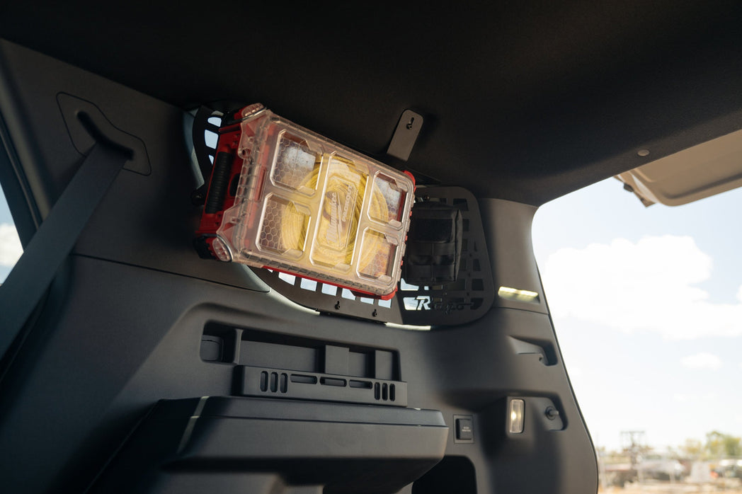 Our 6th Gen 4Runner Rear Window Molle Panels are perfect for storing your overland gear and off-road accessories. The molle design allows you to mount tools, pouches, air hoses, knife sheaths, recovery gear, med-kits, fire extinguishers, and other supplies. The panels are compatible with bolts, straps, zip ties, Quick Fists, and other tactical solutions for securing your equipment/accessories. You can pair the molle panels with our optional Molle Storage Shelf for maximizing your 4Runner’s rear cargo storage space. For help seeing your gear at night, you can mount a Baja Designs Dome Light to each panel.