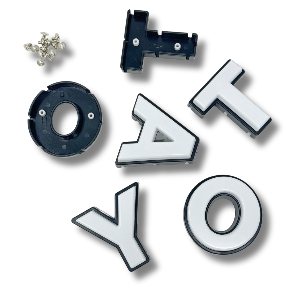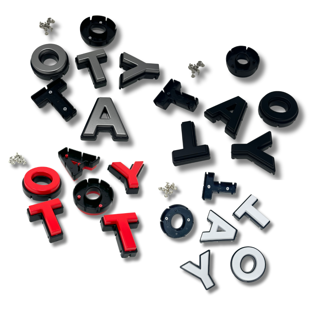 Choose from four vibrant colors to customize your Tacoma's appearance to match your style. Each letter is designed to screw in individually, ensuring a secure fit. Please note that these letters are compatible with grilles that feature four screws for installation.