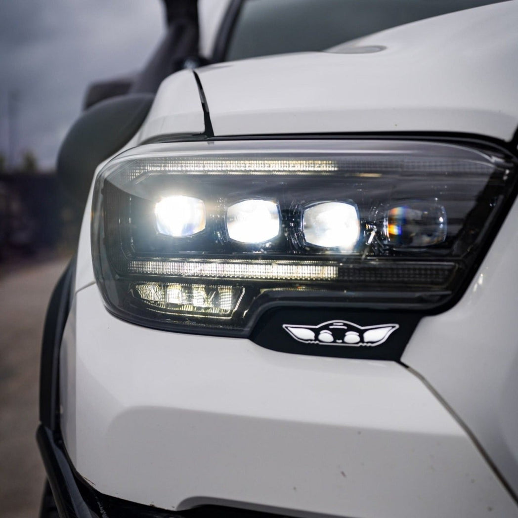 Give your front end and headlights an edge with these headlight bezel kidney trims for the 2016-2023 Tacoma. When you turn on your headlights it will be white and when you turn on your turn signals they will be sequential amber. We can do any logo such as TRD, TACOMA. PRO, and others.